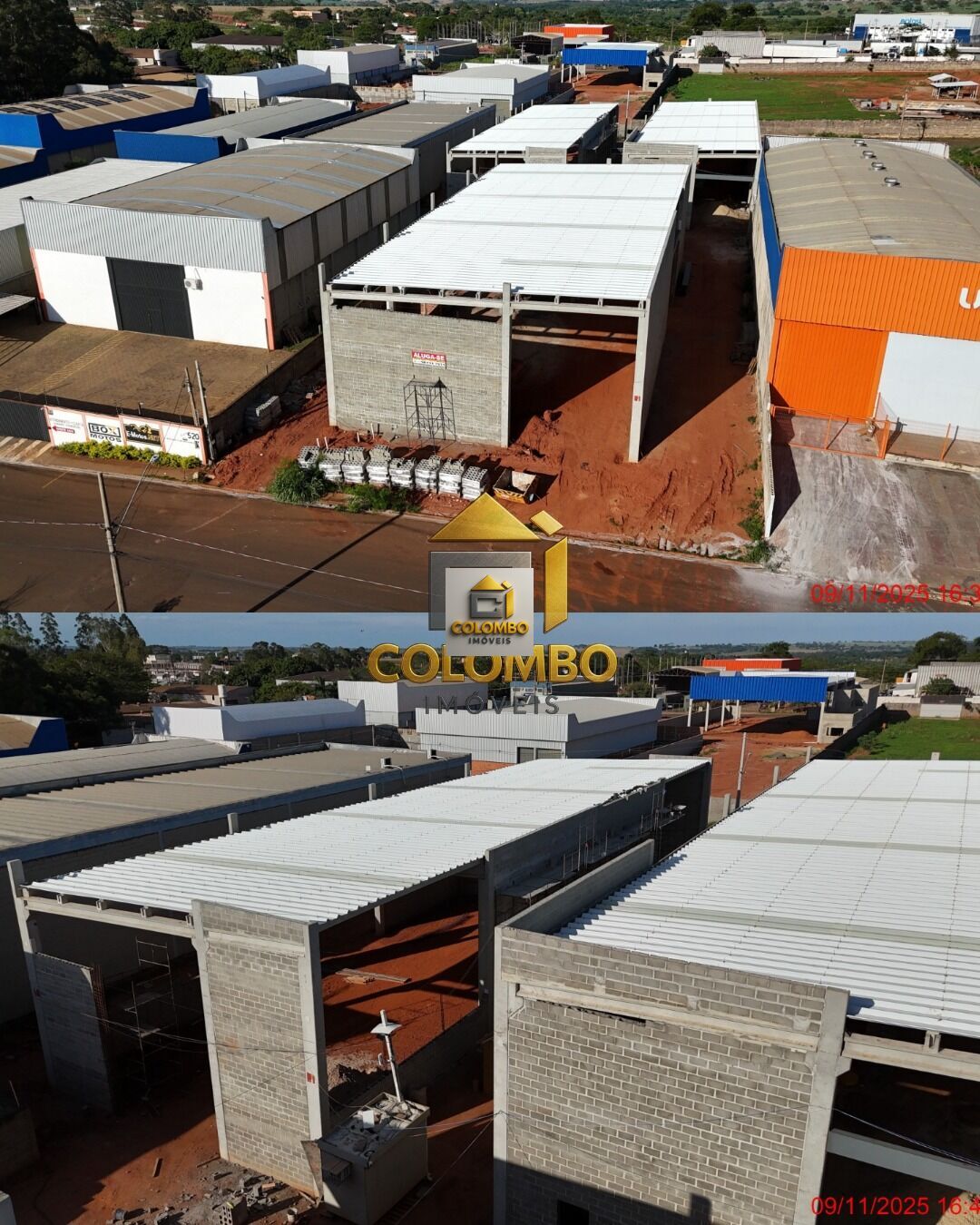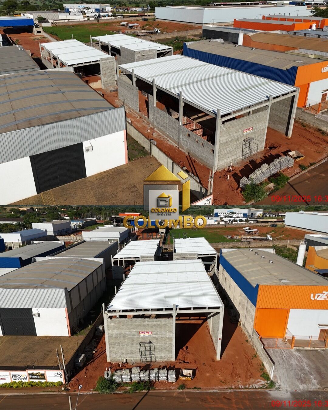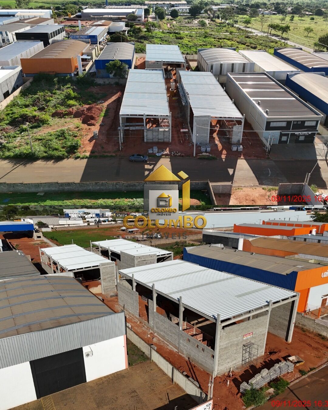 São 3 galpões novinhos, com 2.000 m² de área construída, pé-direito alto, doca lateral, 10 portões para carretas, corredores amplos e fechamento em bloco estrutural que reduz calor e aumenta segurança tudo projetado para operações industriais de médio e grande porte.